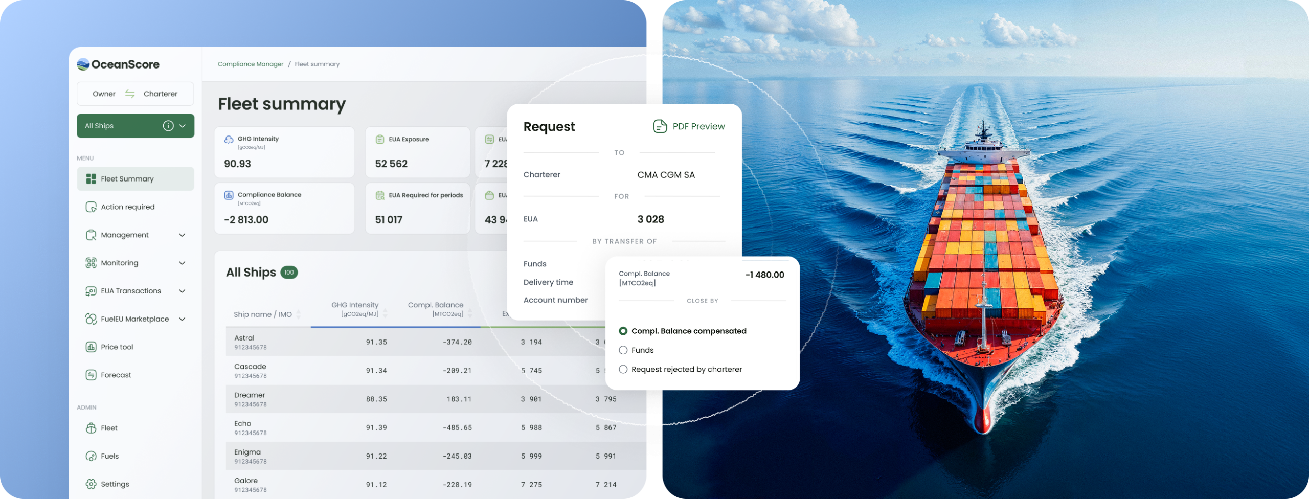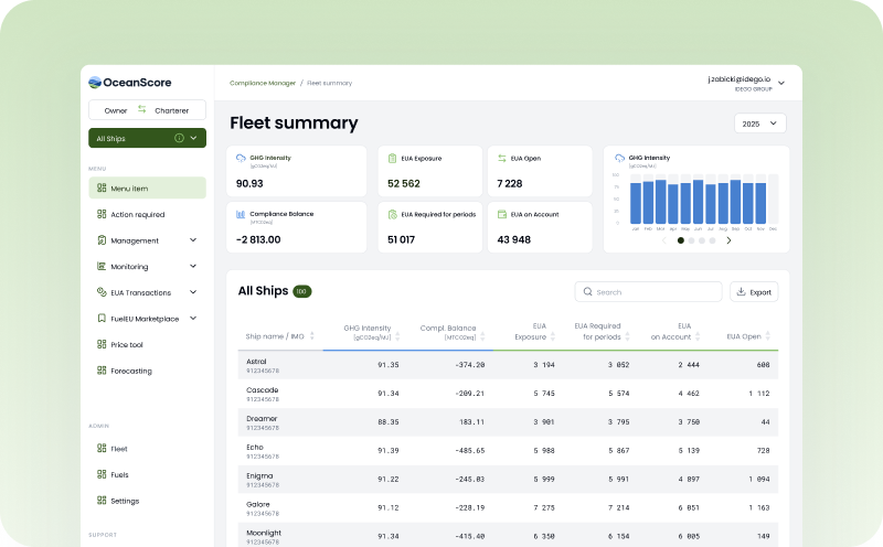 - Over 2,300 vessels rely on OceanScore to manage EU ETS and FuelEU compliance with confidence.