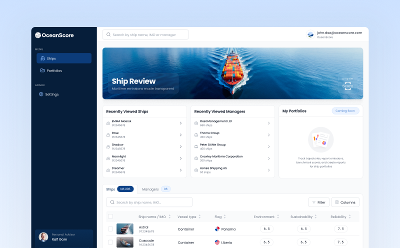 OceanScore is the maritime emissions and compliance software helping shipping companies, financial institutions and ports manage regulatory complexity and emissions responsibilities.