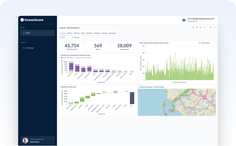 PortView provides ports with a defensible emissions baseline and a continuous measurement framework to track progress toward decarbonization goals.