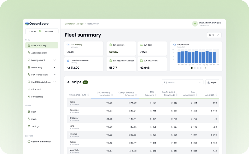 Shipping OceanScore supports shipowners, managers and charterers in handling emissions-related obligations as part of their commercial operations, with clear responsibility flows and predictable outcomes.