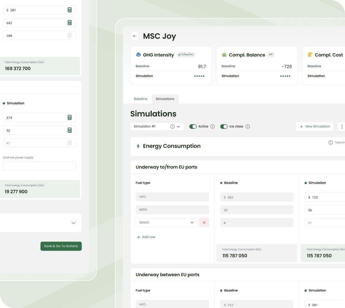 Track ETS and FuelEU exposure, invoices, payments and EUA status with clear workflows and real-time alerts.
